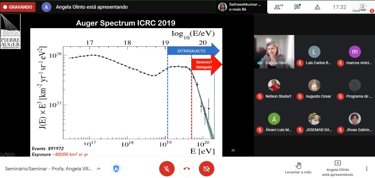 Registros do quadragésimo quarto webinário promovido pelo PPGF. A palestra proferida pela Profa. Angela Villela Olinto, da Universidade de Chicago, nos EUA, foi transmitida simultaneamente pela plataforma Google Meets e pelo YouTube, contando com mais de cento e cinquenta inscritos/participantes. Entre eles, figuraram pessoas dos estados do Acre, Amapá, Bahia, Ceará, Maranhão, Minas Gerais, Pará, Paraíba, Paraná, Pernambuco, Rio de Janeiro, Rio Grande do Norte, Rio Grande do Sul, São Paulo, Rondônia, Roraima, Sergipe e Tocantins. Além de Belém, contou com um público participante das cidades paraenses de Abaetetuba, Ananindeua, Capitão Poço, Castanhal, e Igarapé-Miri.